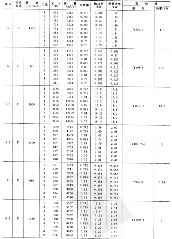 3)風(fēng)機(jī)的傳動(dòng)方式為D式