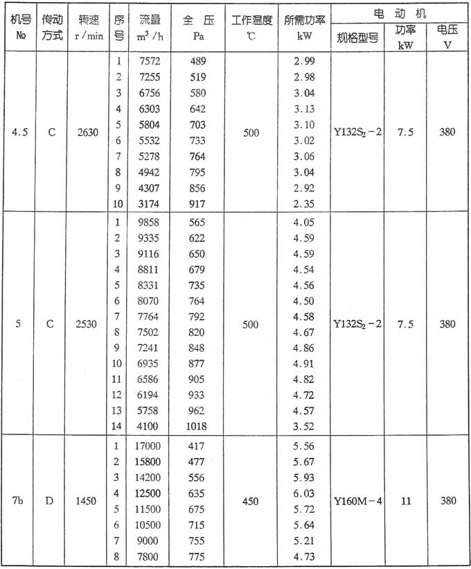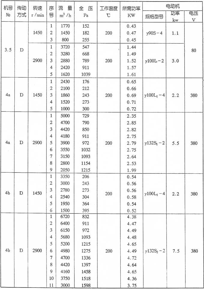 1、該系列風(fēng)機為單吸入式,風(fēng)機的傳動方式為:C、D、式兩種種。